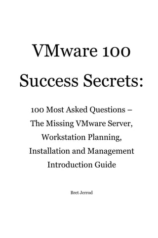 This document provides an introduction to 100 questions about planning, installing, and managing VMware Server, Workstation, and ESX. It aims to answer the most common questions asked in forums and by customers. Each section addresses a different aspect of VMware and virtualization to help users become more successful with VMware products and solutions.