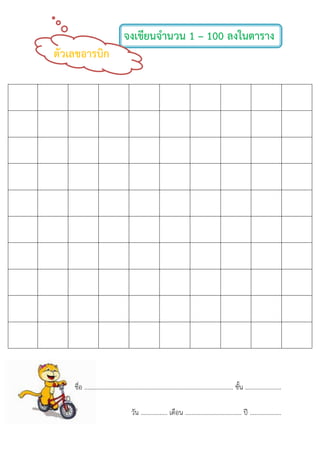 100 ลงในตำรำง ตัวเลขอำรบิก ชื่อ ............................................................................................... ชั้น ....................... วัน ................. เดือน .................................... ปี ....................