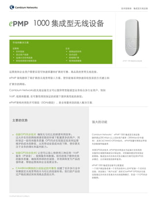 epmp 1000 集成型无线设备是一种高效的宽带无线接入方案,适用于运营商和企业用户,提供高达 200 Mbps 的实际用户速率。其创新的 GPS 同步技术确保了频谱利用效率,降低了安装和运营成本。该设备适合于远端分支机构和未服务区域,能够通过点对点和点对多点的网络模式实现高密度频率复用。