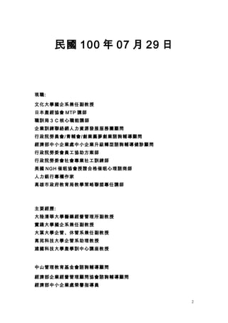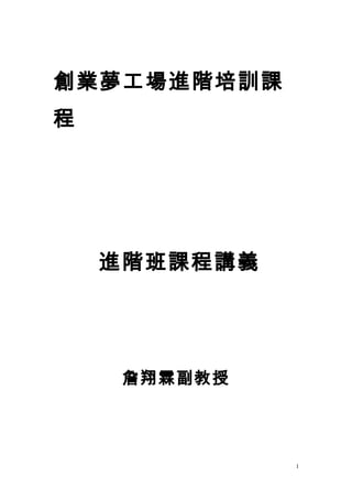 該文檔提供了創業計劃書撰寫的重要性和要素,強調詳細計劃有助於降低創業風險並吸引投資。此外,文檔還探討了創業者在不同成長階段所需的技能和領導轉變,以促進公司成功與變革的適應能力。最後,提到創業者在管理過程中常見的錯誤,提醒他們持續學習和改進。