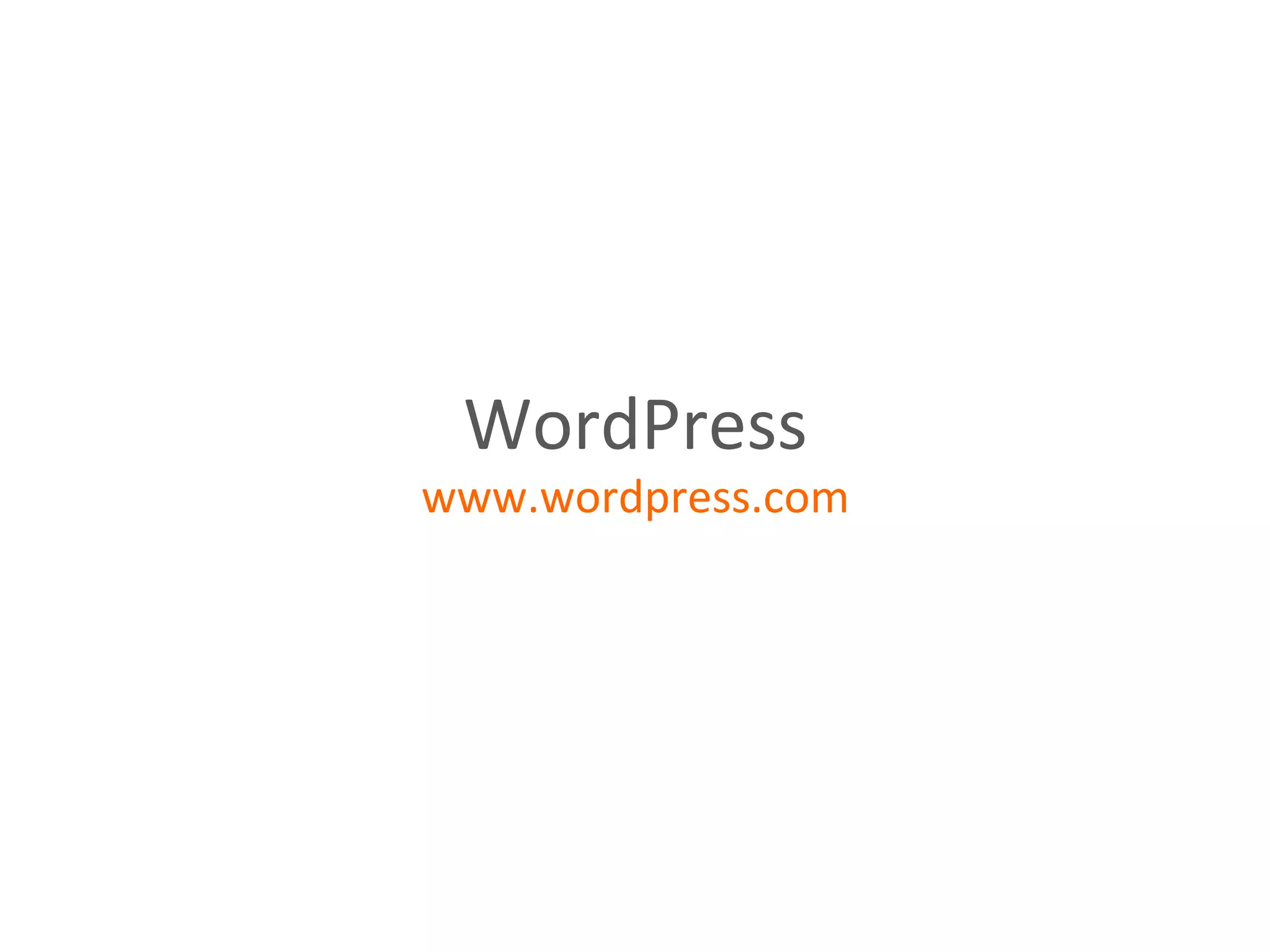 WordPress is one of the most widely used content management systems. It can be used to build various web and blogging sites through its hosted service at wordpress.com for personal blogs or its free open-source version downloaded from wordpress.org. WordPress is more than just a blogging platform as it allows the creation of static pages in addition to blog posts, making it suitable for building complete websites. Users manage their WordPress blogs through the Dashboard interface which provides options for managing posts, media, pages, themes, and settings.