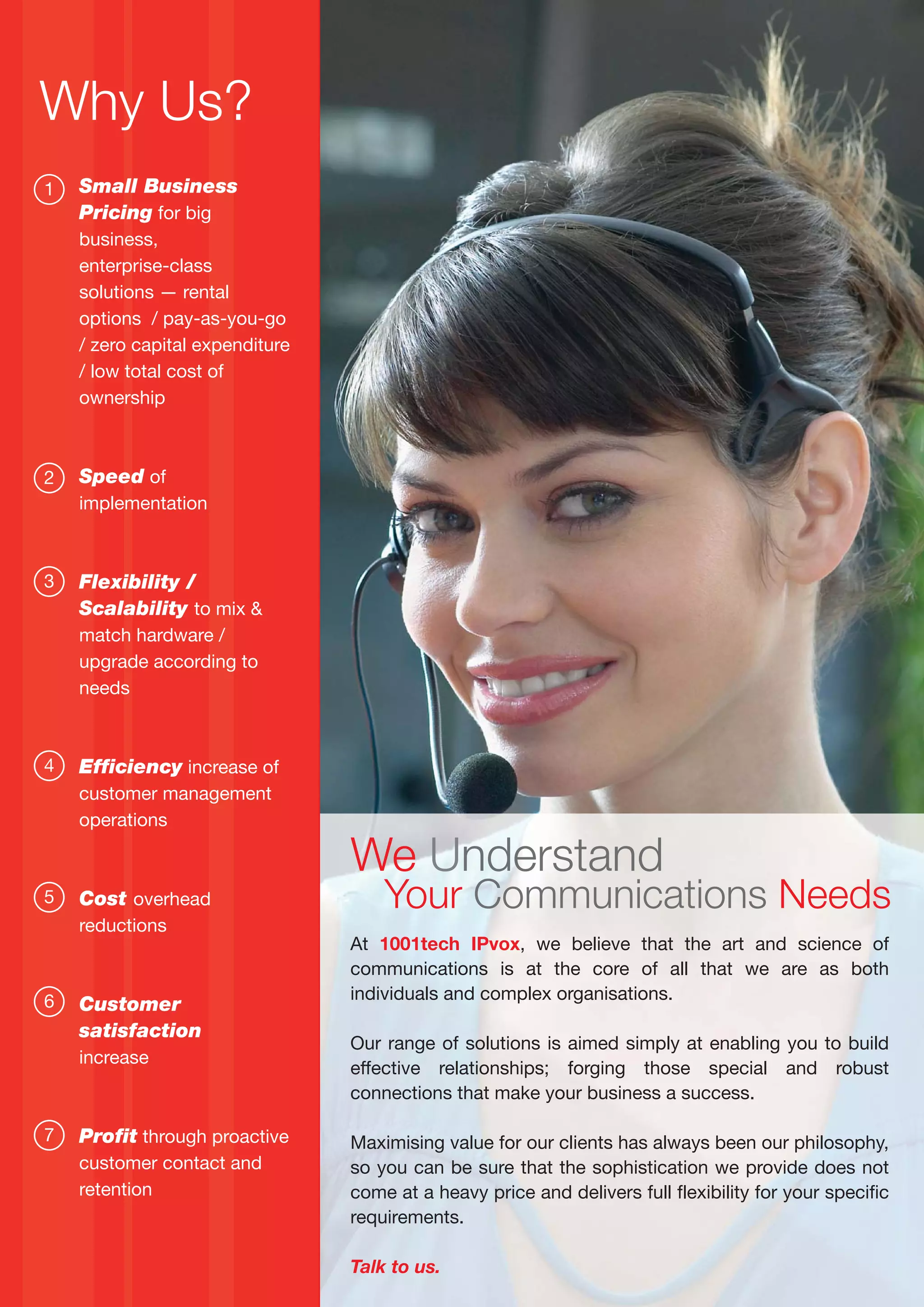 1001tech IPvox provides IP telephony and contact center software solutions for small and medium-sized businesses. Their flagship product, EzyTouch, is an all-in-one call center platform that offers features such auto attendant, skills-based routing, voice logging, reporting, and integration with CRM software. Their solutions aim to improve customer service and reduce costs through increased efficiency of customer management operations.