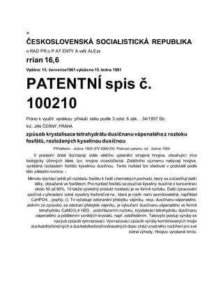 PATENTNÍ spis č.