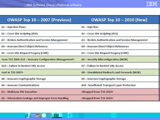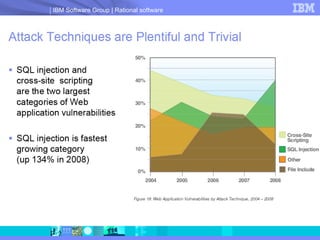 The document discusses web application security testing and provides guidance for testing professionals. It outlines some of the top attacks like SQL injection and cross-site scripting. It recommends getting educated on security topics, using tools like WebScarab and IBM Rational AppScan to test for vulnerabilities, and incorporating security testing into the development process.