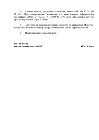 4. Визнати такими,що втратили чинність, накази МВС від 30.06.1998