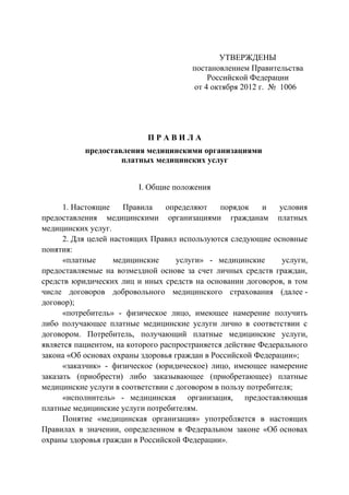 Постановление правительства Российской Федерации от 4 октября 2012 года утверждает правила предоставления платных медицинских услуг в соответствии с федеральным законодательством. Документ определяет порядок предоставления таких услуг, права и обязанности сторон договора, а также условия, сообщаемые потребителям. Установлены требования к качеству медицинских услуг и обязанность исполнителей обеспечивать информирование потребителей.