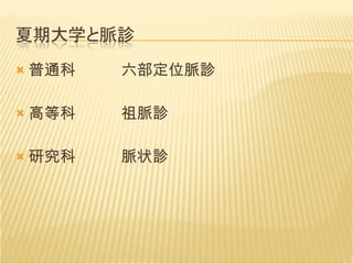 - #9 2009/8/7 大上勝行 [email_address] http://blog.livedoor.jp/tjm_toku/ 平成 21 年夏期大学研究科 脈状と病理病証