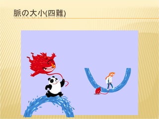- #62 陰虚で物が不足している=中空・芯がない 陰虚で熱が発生している=脈が強い・脈が速い 熱の波及している部位が強く感じる=各臓腑・浮いているということは表面に熱がある。沈んでいるのは熱がこもっている。 脈の強さで病の軽重が解る。例えば心の脈が強い。強く沈んでいるほど重い。 2009/8/7 大上勝行 [email_address] http://blog.livedoor.jp/tjm_toku/ 平成 21 年夏期大学研究科 脈状と病理病証