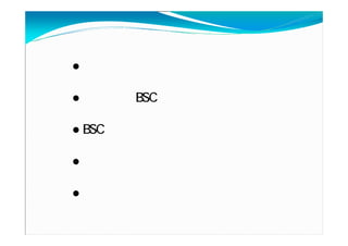 The document discusses a company's business strategy council (BSC) meeting in August 2010. It outlines the company's key performance indicators and goals for various divisions, including increasing customer retention rates, improving web platforms, and expanding outsourcing partnerships. Progress and initiatives are reviewed across departments on a quarterly basis using a PDCA cycle approach.