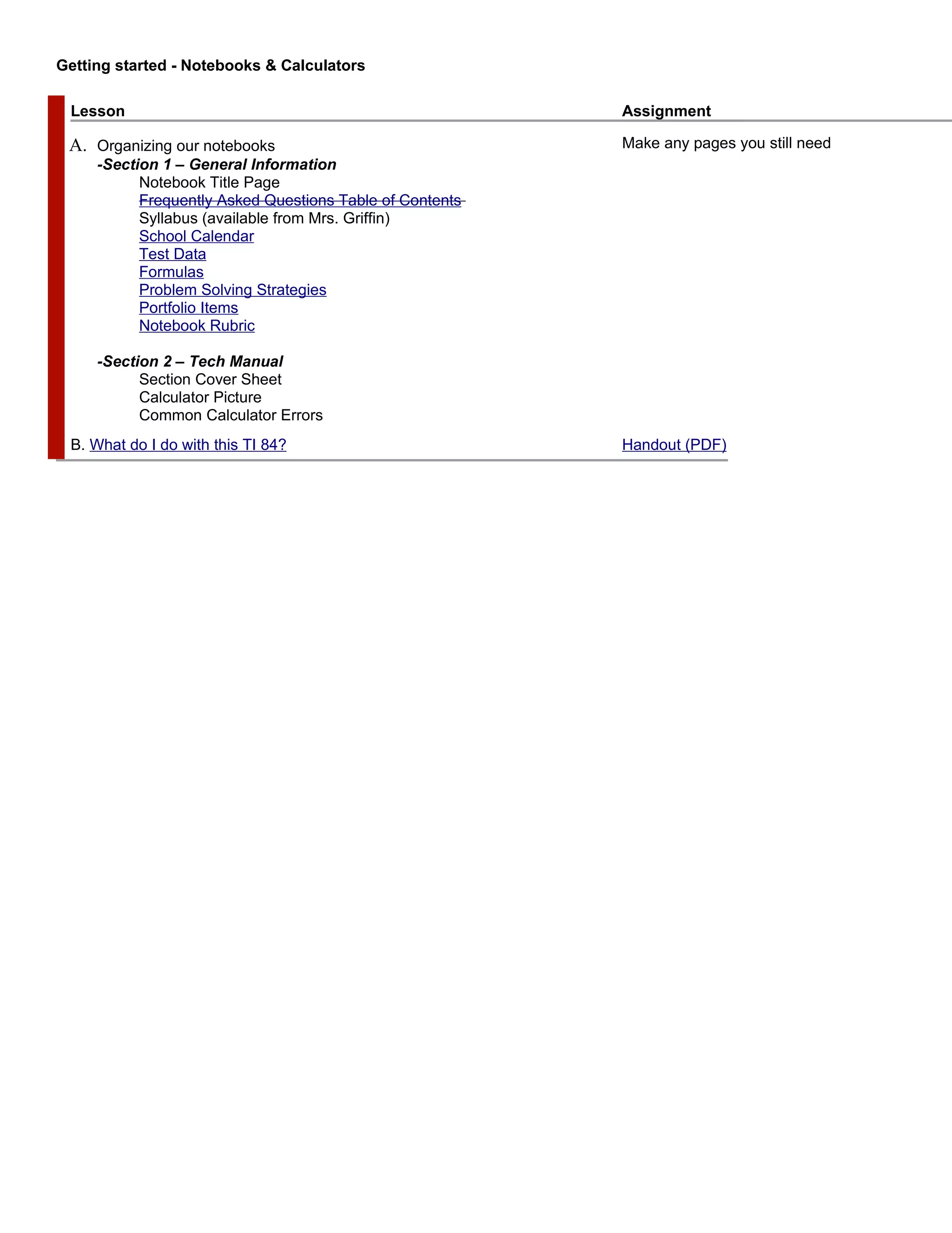 This document provides a summary of lessons and assignments for several math units: