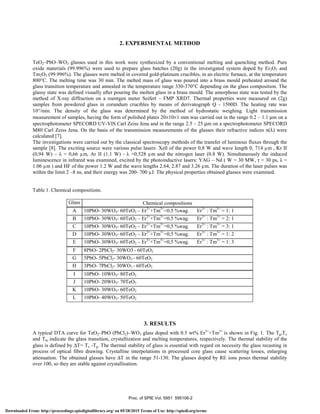 Heavy metal oxide glasses doped with rare earth ions were investigated for their optoelectronic properties. TeO2–PbO–WO3 glasses were doped with Er3+ and Tm3+ ions and prepared using a conventional melting and quenching method. The glasses exhibited infrared luminescence from the Er3+ and Tm3+ ions at room and liquid helium temperatures due to energy transfer processes between the glass host and rare earth ions. The glasses also showed potential for excitation by Nd-YAG lasers and could enable optoelectronic device applications due to their properties.