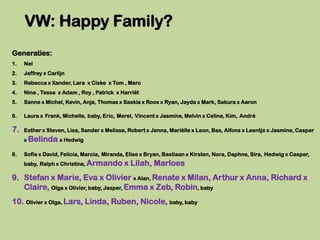 6. Laura x Frank, Michelle, baby, Eric, Merel, Vincent x Jasmine, Melvin x Celine, Kim, André
