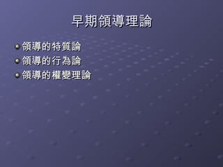 该文档探讨了领导力与沟通能力的理论,包括早期的领导特质论、行为论和权变理论等。有效的领导者应具备一系列特质,并能够根据员工的成熟度调整领导风格。文中还提到影响领导力的因素及组织失去士气和绩效的原因,强调领导者在塑造团队中的关键作用。