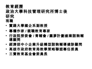 本文件提供了企劃書撰寫及簡報技巧的指導,涵蓋了計劃的六要素、撰寫步驟、執行策略及成果評估等內容。重點在於如何有效地傳達創意並吸引受眾,並提供了針對簡報製作和視覺表達的具體建議。最後,強調良好的眼神交流和行為識別對於提升簡報魅力的重要性。