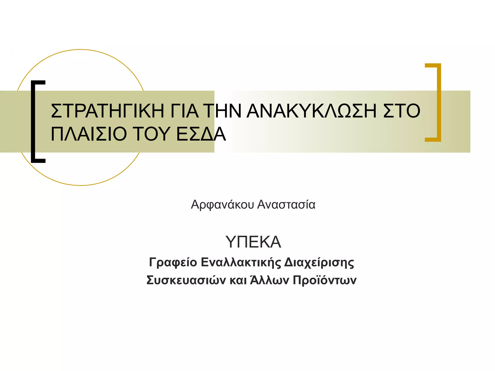 ΣΤΡΑΤΗΓΙΚΗ ΓΙΑ ΤΗΝ ΑΝΑΚΥΚΛΩΣΗ ΣΤΟ ΠΛΑΙΣΙΟ ΤΟΥ ΕΣΔΑ