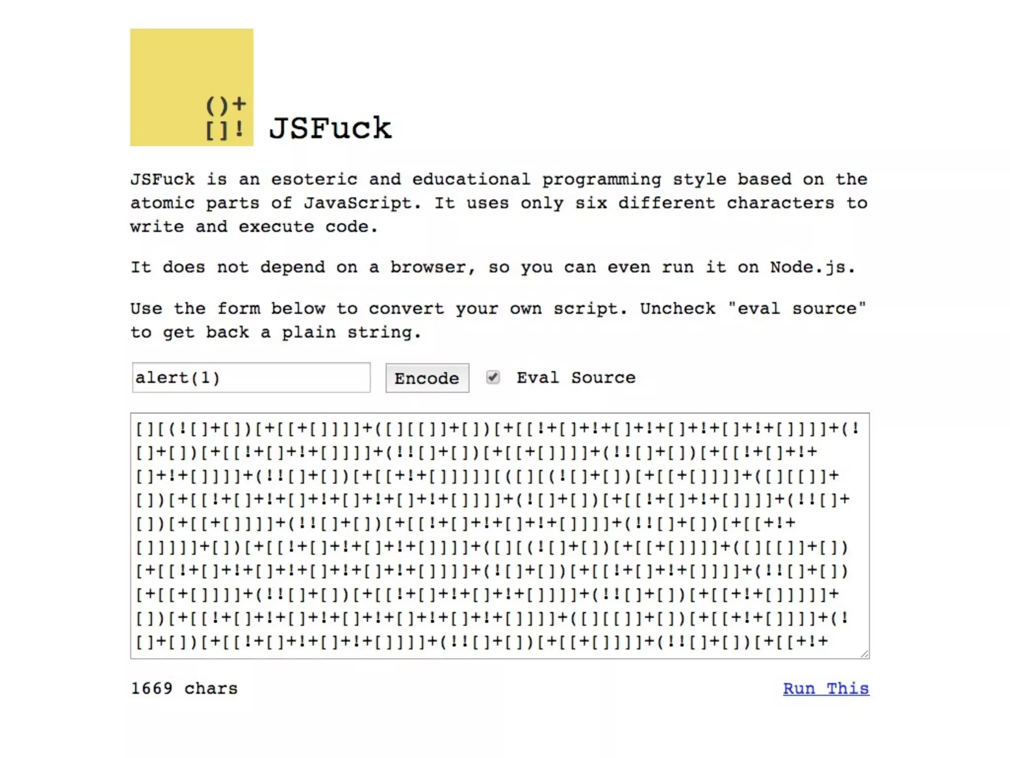 The document discusses various programming techniques and examples in JavaScript, including usage of the Brainfuck language for educational and entertainment purposes. It highlights complex JavaScript hacks and tricks, such as expressions that demonstrate unique functionalities within limited byte sizes. Additionally, it includes inspirations and resources related to coding competitions and creative coding projects.