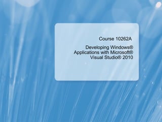 This document provides an overview and introduction to a training course on developing Windows applications with Microsoft Visual Studio 2010. The summary includes: