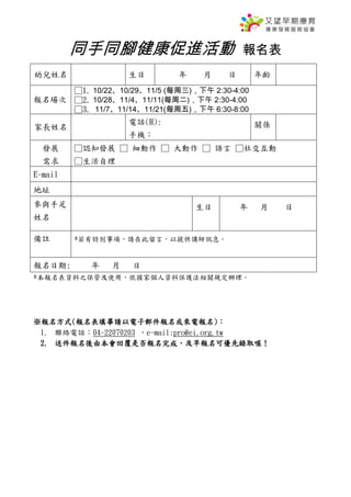 本活動旨在提升發展遲緩和身心障礙嬰幼兒的身體活動以及促進手足和同儕的互動,將於103年10月22日至11月21日期間舉辦免費課程。參與者須為3至6歲的幼兒,活動地點位於臺中市兒童發展啟蒙資源中心,並請家長提前報名。家長還可以獲得衛教材料以便在家進行活動。