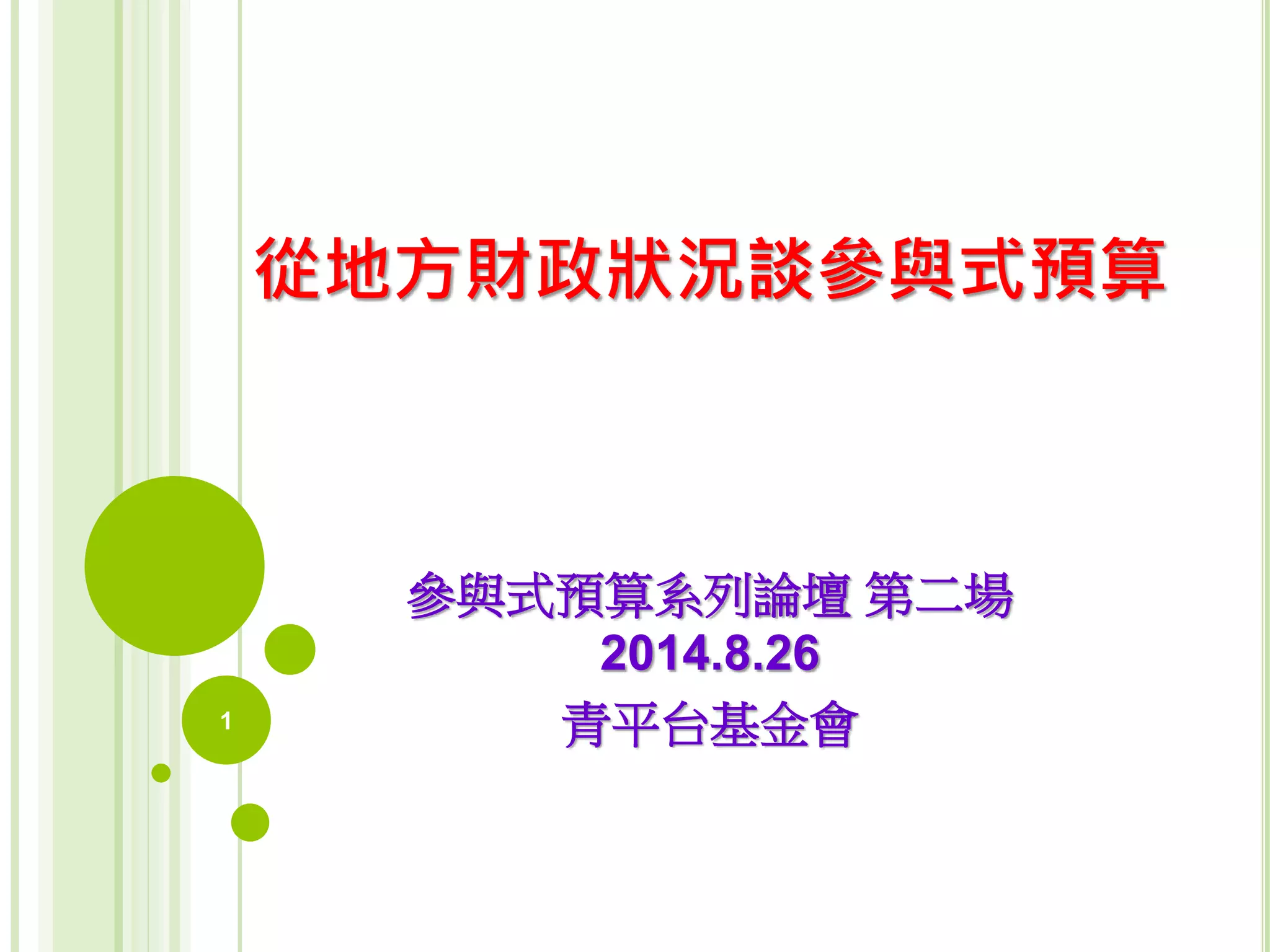 此文档探讨地方政府的财政状况与预算编制,重点分析了财政收入与支出的构成及地方财政面临的问题。同时,提出了参与式预算的可行性,强调公众参与在预算决策中的重要性与意义。通过协商与讨论,期望能提高预算透明度,增强民众对公共资源使用的感知。