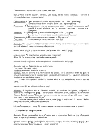 (геометричні фігури задають питання, учні класу дають повні відповіді, а вчитель в