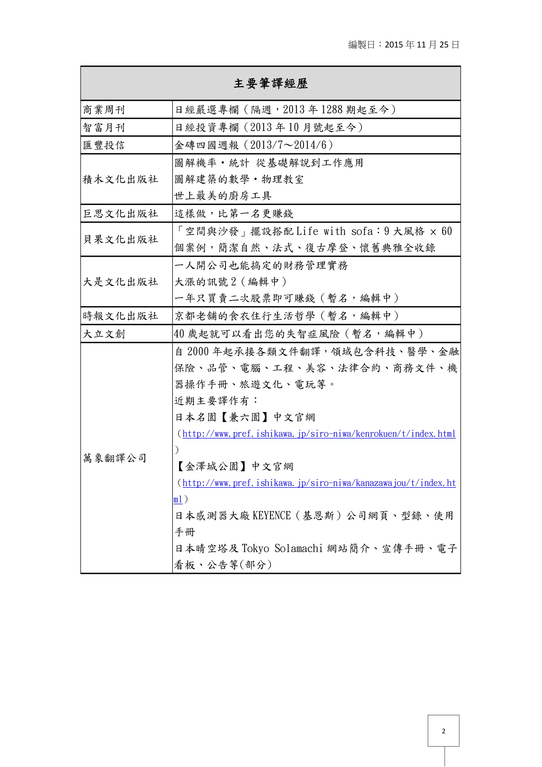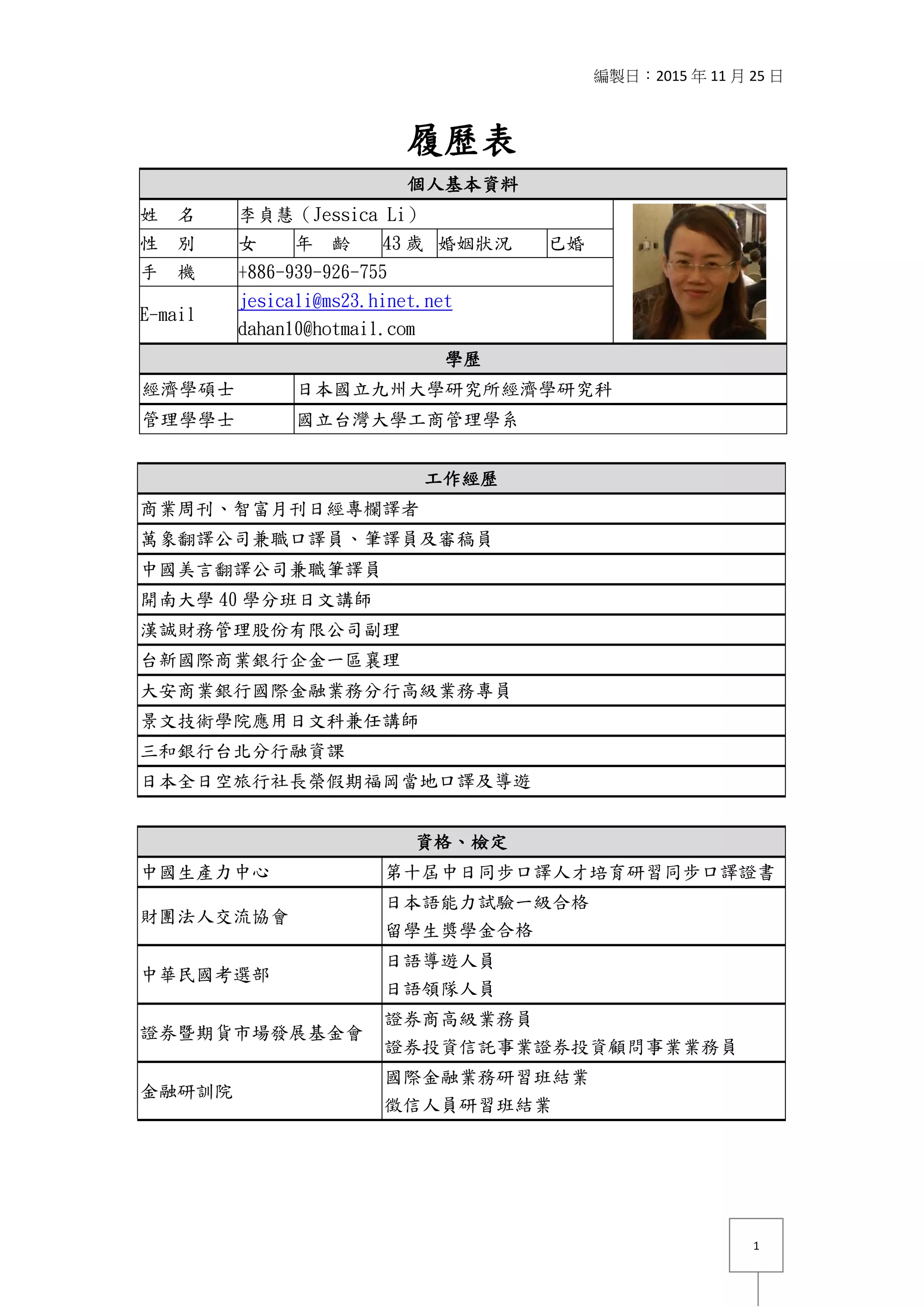 李貞慧是一名擁有經濟學碩士及管理學學士學位的專業翻譯和口譯員,從事多年的翻譯、口譯工作及教學經驗,擅長科技、醫學和金融等領域。她曾為多個知名出版物和公司提供翻譯服務,並參與多場國際會議的口譯工作。她持有多項語言及金融相關的專業資格證書,展現出其在語言及金融領域的專業能力。