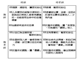 本文件探讨职场情绪管理和沟通技巧,重点分析人际冲突处理方法及情绪的影响。作者通过多种教学经验,提出有效沟通的方式,包括倾听、理解和建立信任。文中强调了情绪与价值观如何塑造个人反应,及其在职场中的重要性。