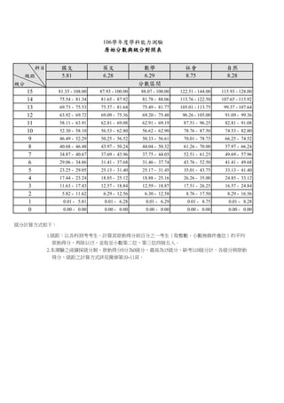 Similar to 106原始分數與級分對照表