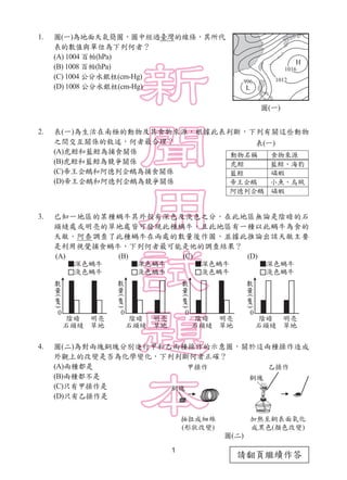 本文件为国中教育会考自然科试题本,涵盖54题选择题,考试时间为70分钟。作答要求包括答题卡的使用规则及答题注意事项,并附有多道科学相关题目的举例。文件强调应遵循监考员指示并校对基本信息以确保考试有效进行。
