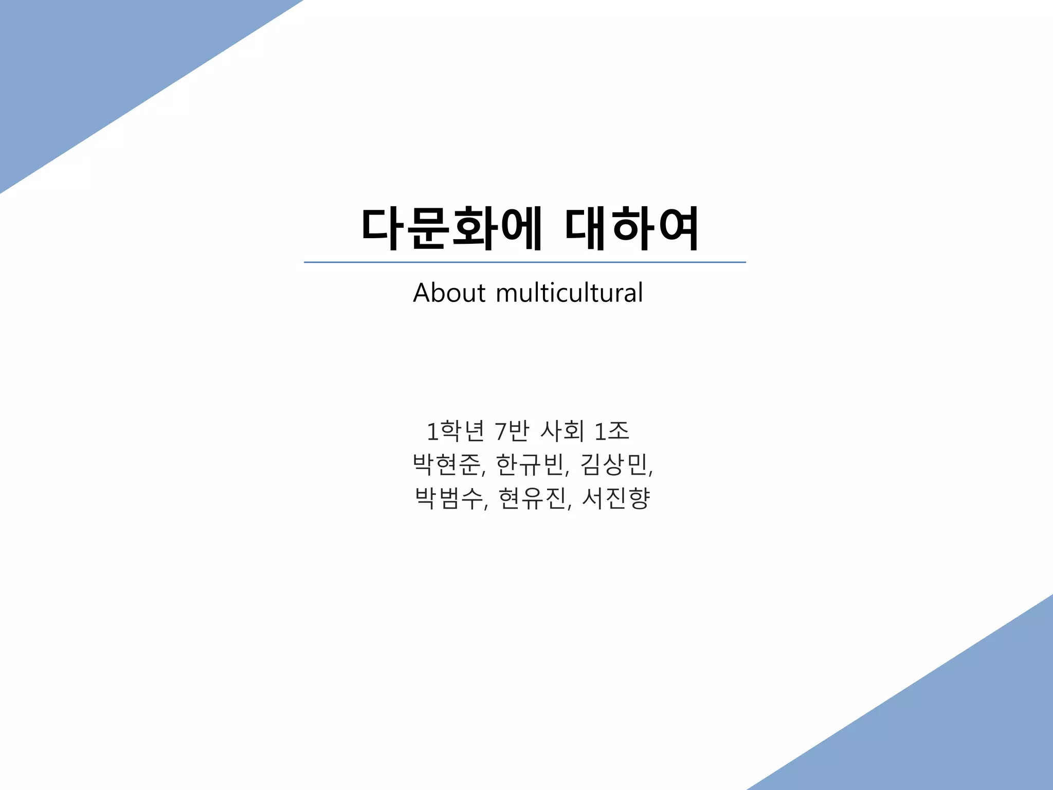 multicultural 1학년 7반 사회 1조 박현준, 한규빈, 김상민, 박범수, 현유진, 서진향