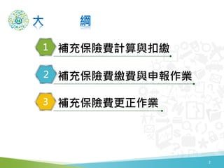 本文档详细说明了补充保险费的计算、扣缴及申报流程,包括适用的法律依据、计算公式及各类保保险对象的具体规定。同时针对不同保险对象及所得类型,阐述了补充保险费的扣取范围和相关案例分析。最后,文档还包括对弱势群体的特别规定及相应的证明文件要求。