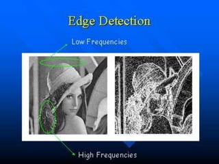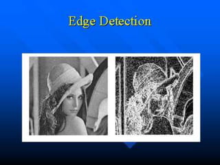 Computer vision systems use digital image processing and analysis techniques to interpret and understand images. There are many approaches to computer vision including edge detection, segmentation, shape and texture description, as well as techniques for image enhancement, restoration, compression and more. While human vision is very good at tasks like recognition and navigation, computer vision is still limited and faces challenges from changes in lighting, occlusion, and ambiguity.
