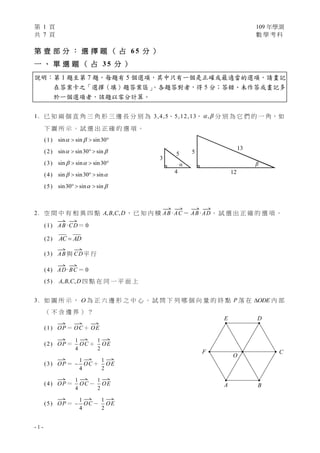6. 參 考 數 值 : 2 1.414 , 3 1.732 , 5 2.236 , 6 2.449 , 3.142