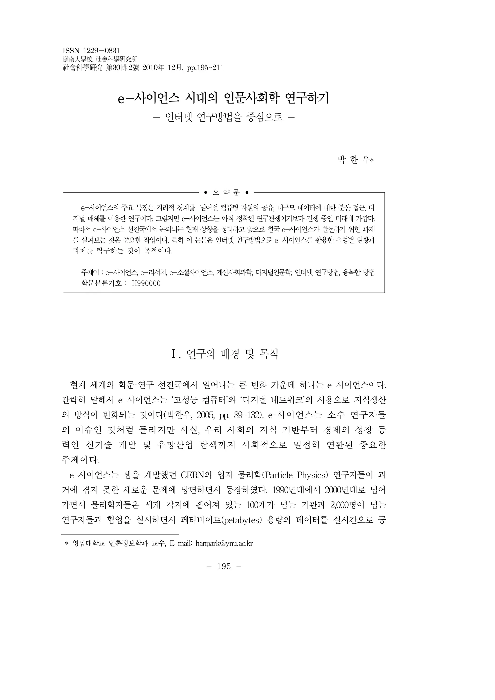 e-사이언스 시대의 인문사회학연구하기(박한우) 197