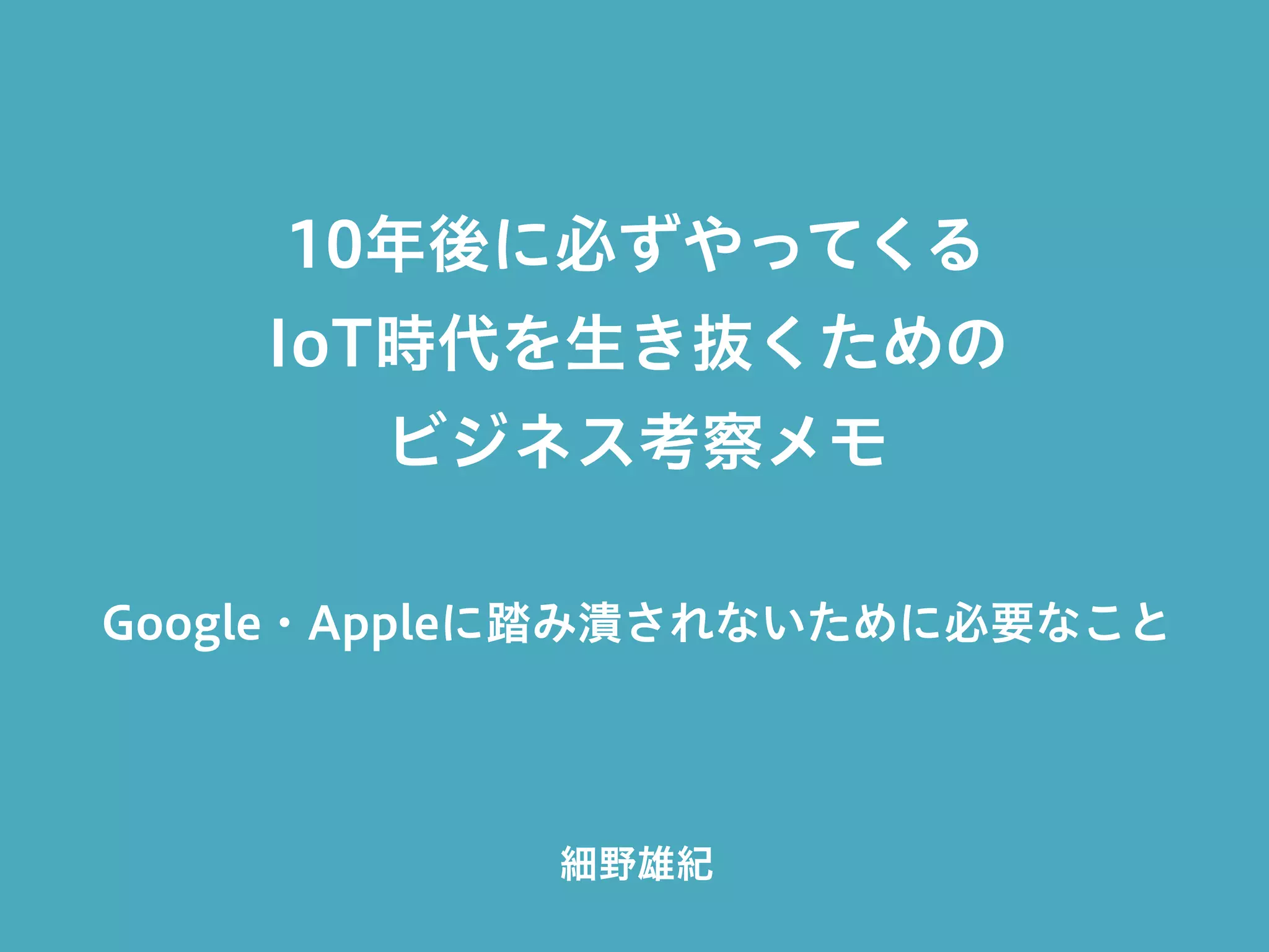 10年後に必ずやってくる IoT時代を生き抜くための ビジネス考察メモ Google・Appleに踏み潰されないために必要なこと 細野雄紀