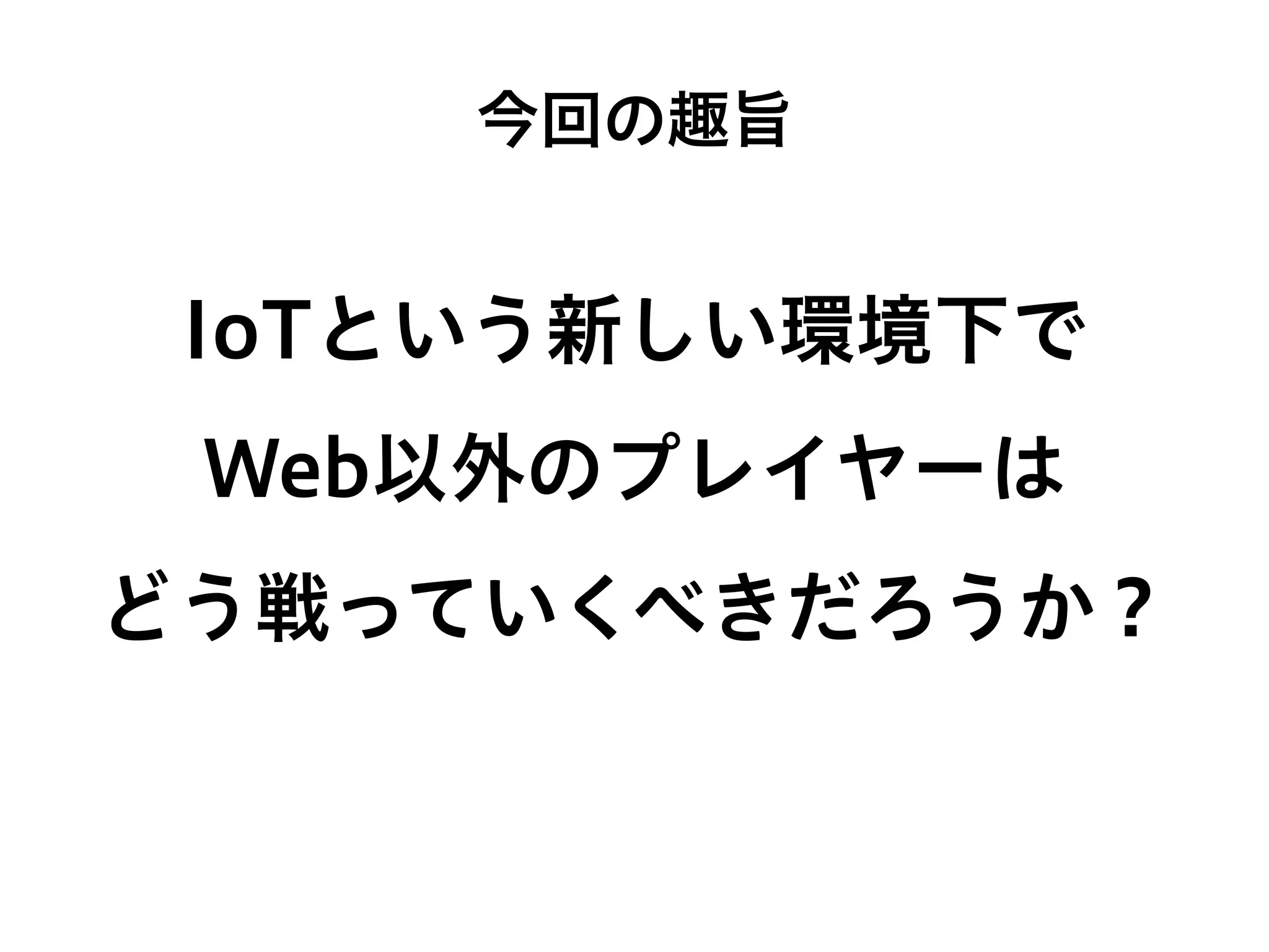 今回の趣旨 IoTという新しい環境下で Web以外のプレイヤーは どう戦っていくべきだろうか?