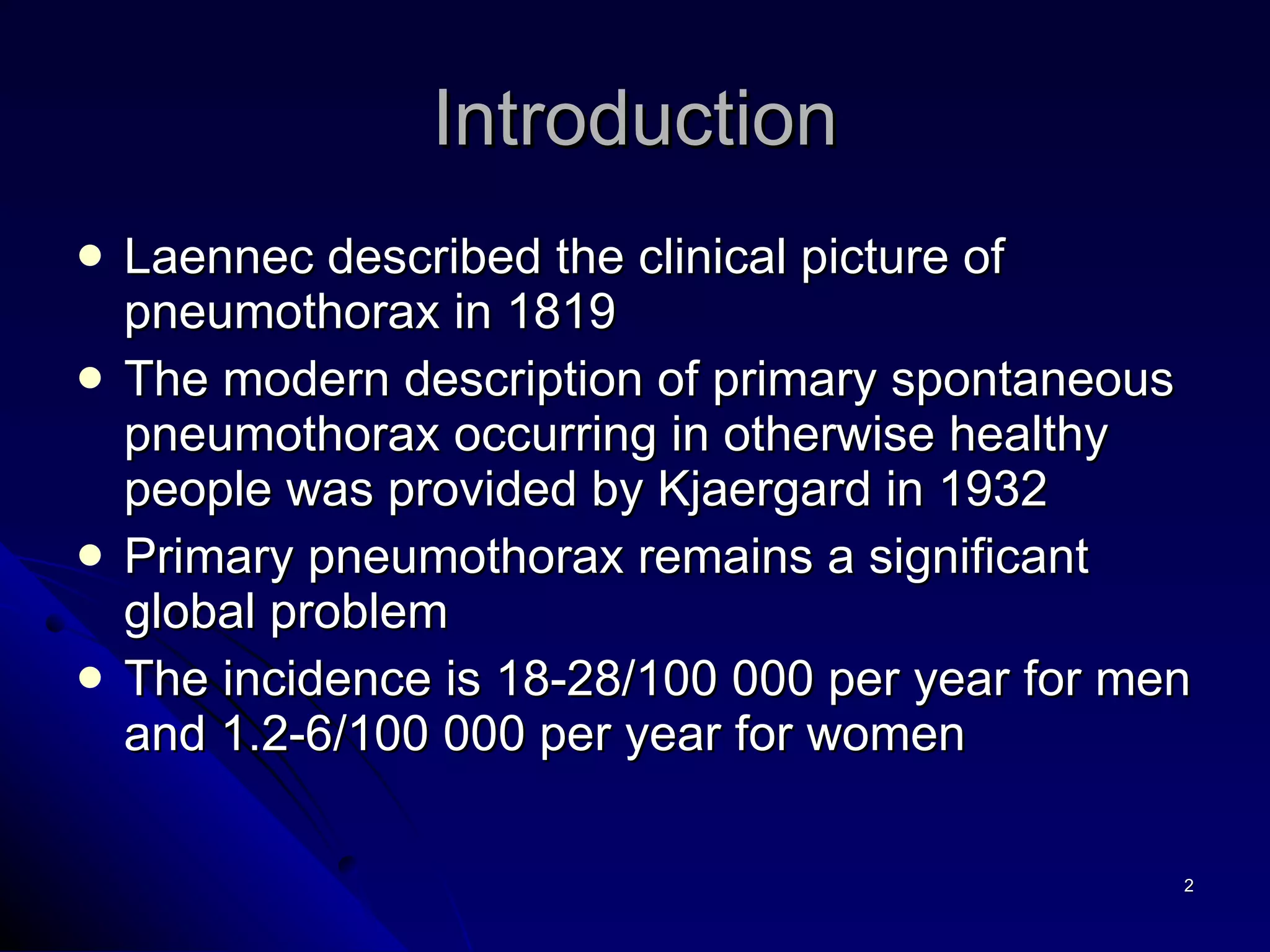 - The document discusses pneumothorax, describing its classification, pathogenesis, clinical presentation, diagnosis, and treatment options.