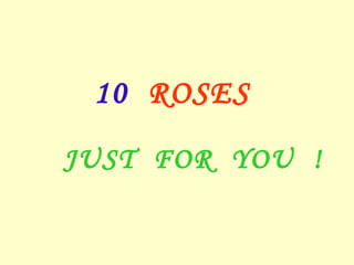 The document is about sending 10 roses to someone as a sign they are special. Each rose represents a wish for the recipient such as friendship, love, wealth, happiness, and health. It encourages the recipient to pass the message on to others, with increasing numbers of people leading to wishes being granted sooner, and says sending flowers to others one cares about always feels nice.