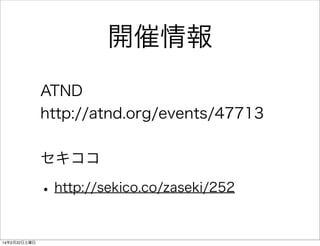 ちなみに • 中の人がTokyoRで発表して下さいました! http://www.slideshare.net/hiratake55/ seekrjp-22281554 14年2月22日土曜日