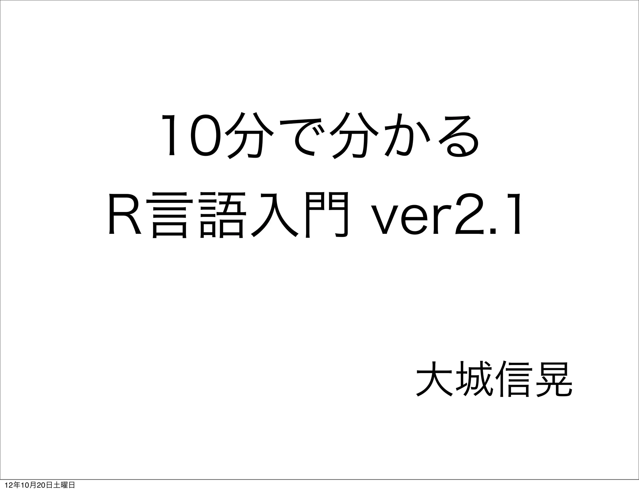 • Rは無料の統計解析ソフト • パッケージが豊富 • データ解析からレポートまで利用可能 12年10月20日土曜日