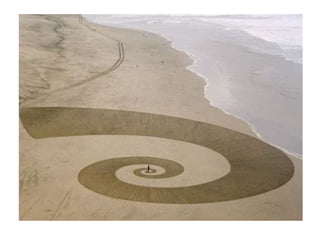 Land art, also known as earth art, emerged in the late 1960s as an art movement that creates works of art directly in nature using materials found in the landscape like soil, rock, and organic media. The works are not sculptures placed in nature but rather alter the landscape itself and frequently exist outdoors, unprotected from natural weathering and erosion. Many land artworks are ephemeral and only documented through photographs since they exist at a large scale across remote natural settings.
