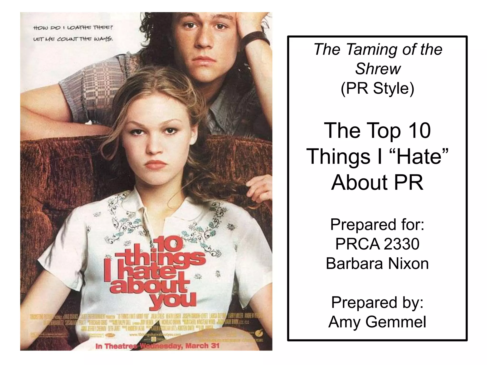 This document appears to be a list of topics for a PR class, including AP and APA writing styles, ethics, persuasion, multicultural awareness, writing skills, crisis management, listening skills, market research, using the internet, and making good impressions. The list contains brief phrases and titles for each topic to be covered over the course of the PR class.