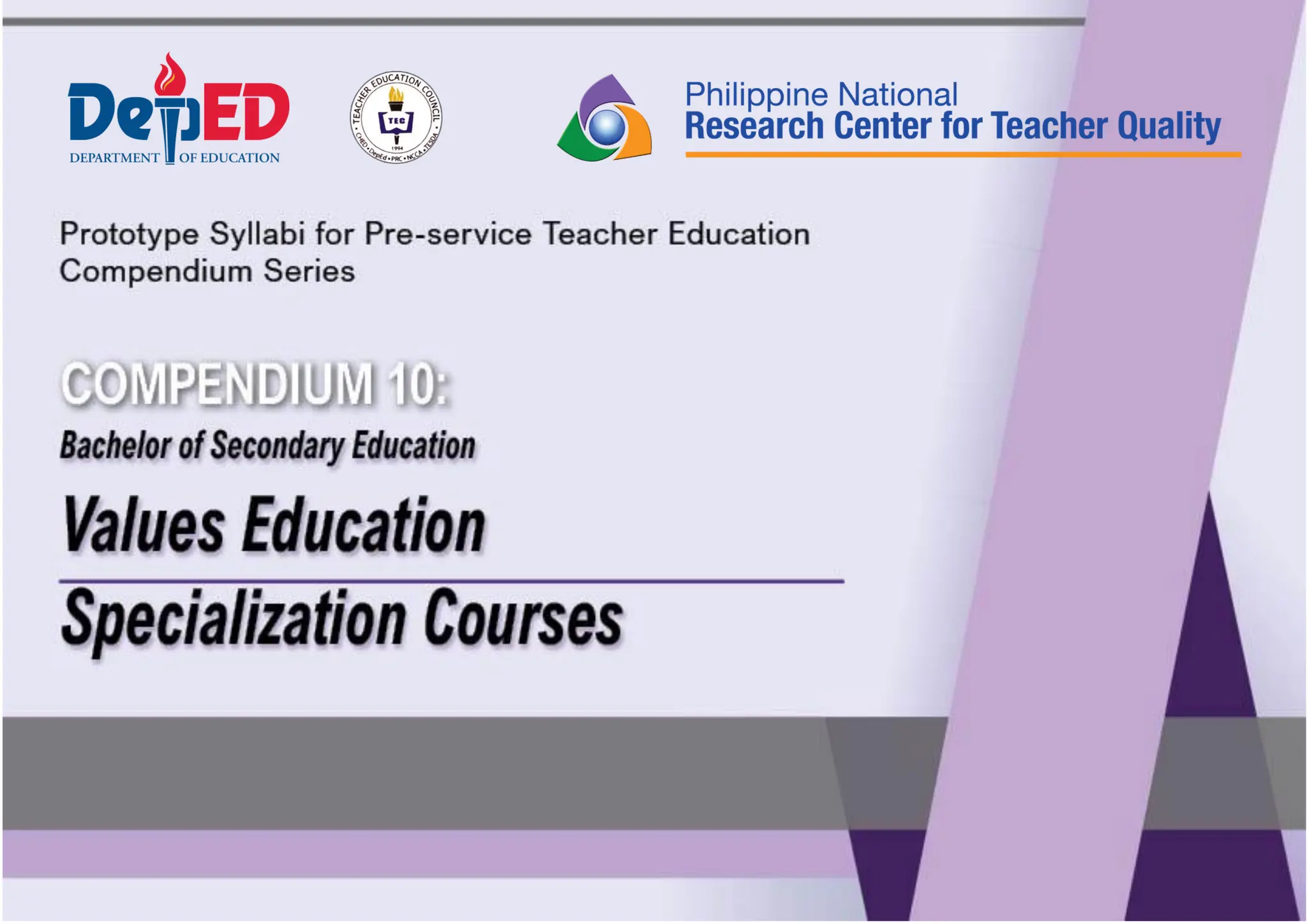This document provides an overview of prototype syllabi developed for values education specialization courses. It acknowledges the partner institutions and individuals involved in the project. The introduction describes the priority programs, intended audience, guide to reading the syllabi, and features of the syllabi. Course syllabi are then provided for 21 values education specialization courses, covering topics like foundations of values education, philosophy, culture, psychology, family life, teaching approaches, and research. The document concludes by recognizing administrators from the partner institutions that supported this initiative.