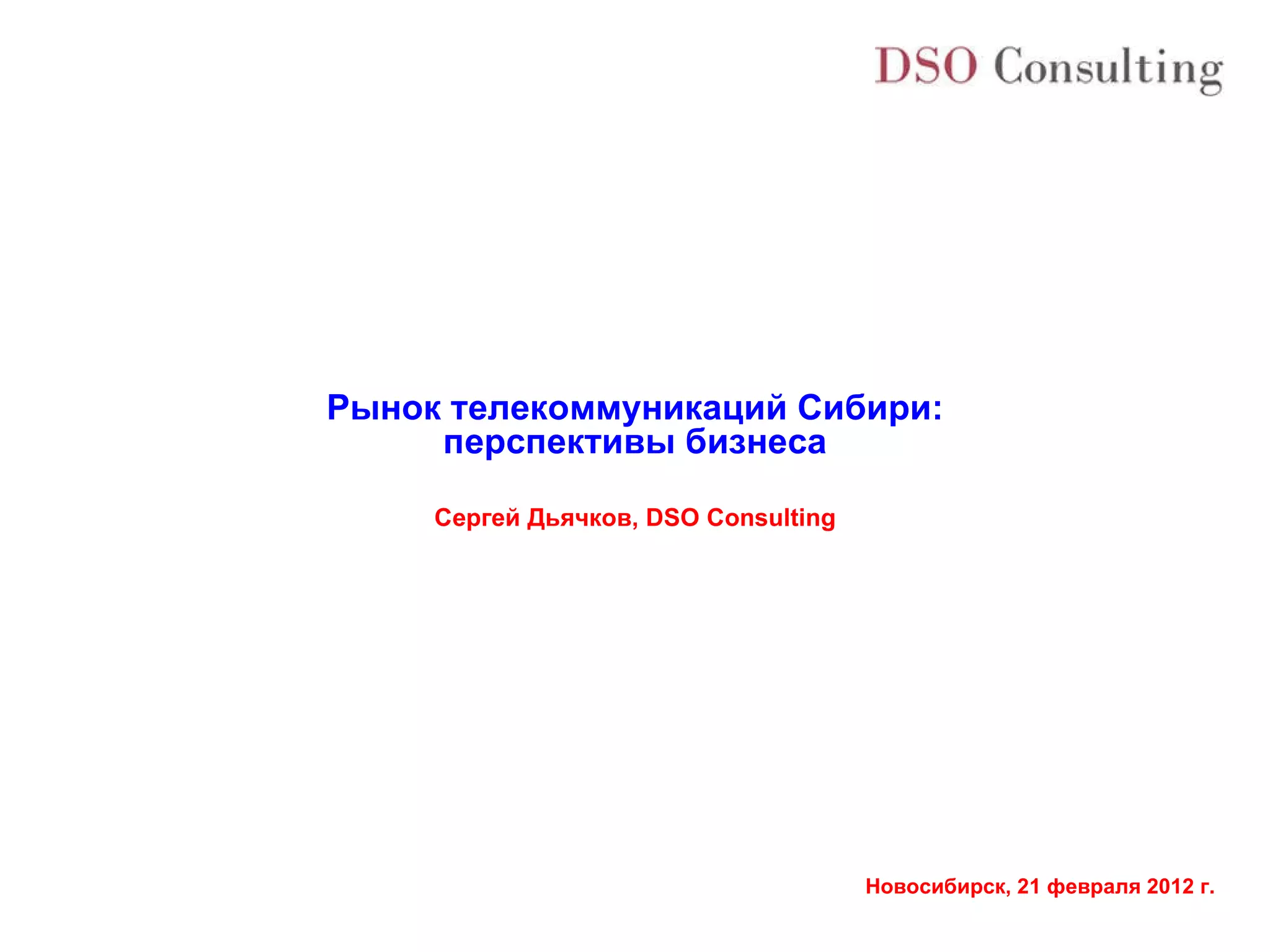 Документ анализирует состояние и перспективы телекоммуникационного рынка в Сибири, в частности мобильной связи и широкополосного доступа к интернету. Ожидается снижение операционной рентабельности и затруднения для новых игроков из-за высокой насыщенности рынка. В статье также упоминаются консолидационные процессы и покупки среди компаний, что может привести к концентрации рынка у крупных операторов.