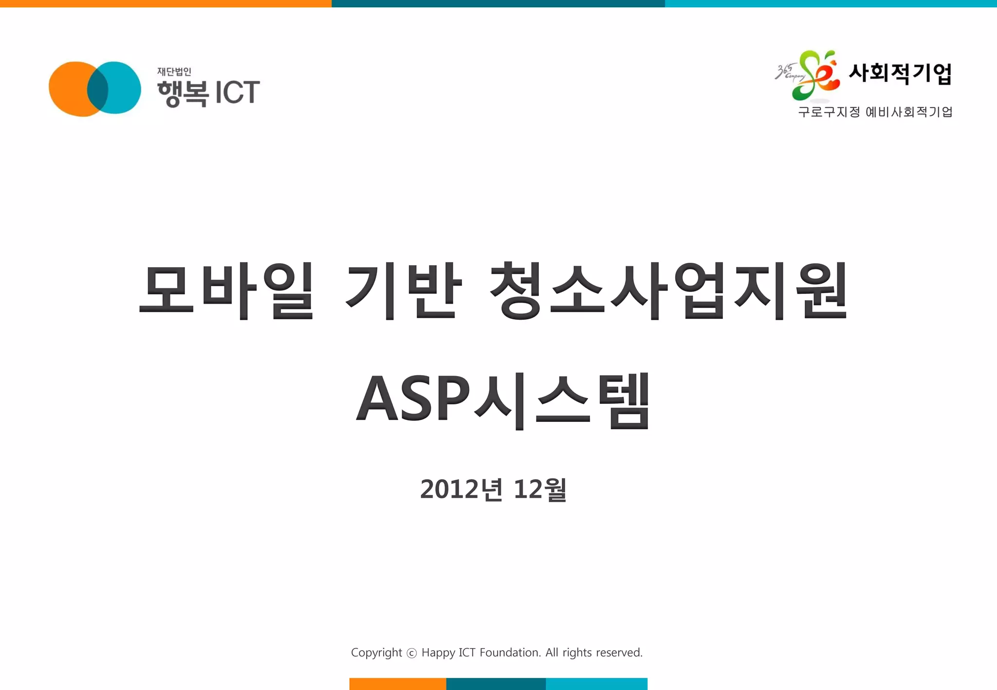 청소ASP 시스템은 청소사회적기업의 업무 효율화와 취약계층 근로자들의 근로 환경개선을 위하여 정부와