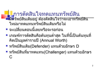 การตัดสินใจในการลงทุนโครงการ Revised24042014 Similar to 11การทดแทนทรัพย์สิน