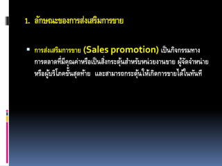 ลักษณะของการส่งเสริมการขาย (Thenature of sales
