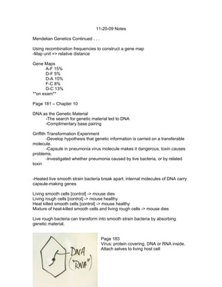 The document summarizes several key concepts in genetics: