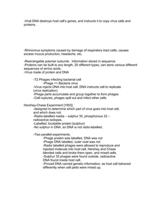 3) The Hershey-Chase experiment used radioisotope labeling to show that viral DNA, not protein, enters the host cell, demonstrating that DNA carries the genetic information of viruses.