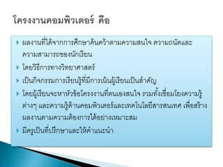 อย่างเหมาะสม รวมถึงการพัฒนาโครงงาน ก่อให้ เกิดการเรี ยนรู้