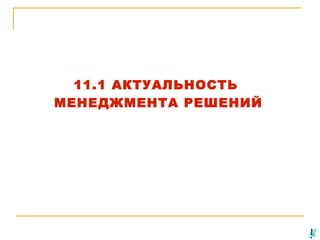 Документ обсуждает актуальность и сложность управленческих решений в условиях изменений на рынке и неопределенности. Основное внимание уделяется новейшим методам управления, включая частные инициативы и партнерства между государством и бизнесом. Также рассматриваются инструменты поддержки принятия решений, такие как нейронные сети и экспертные системы.